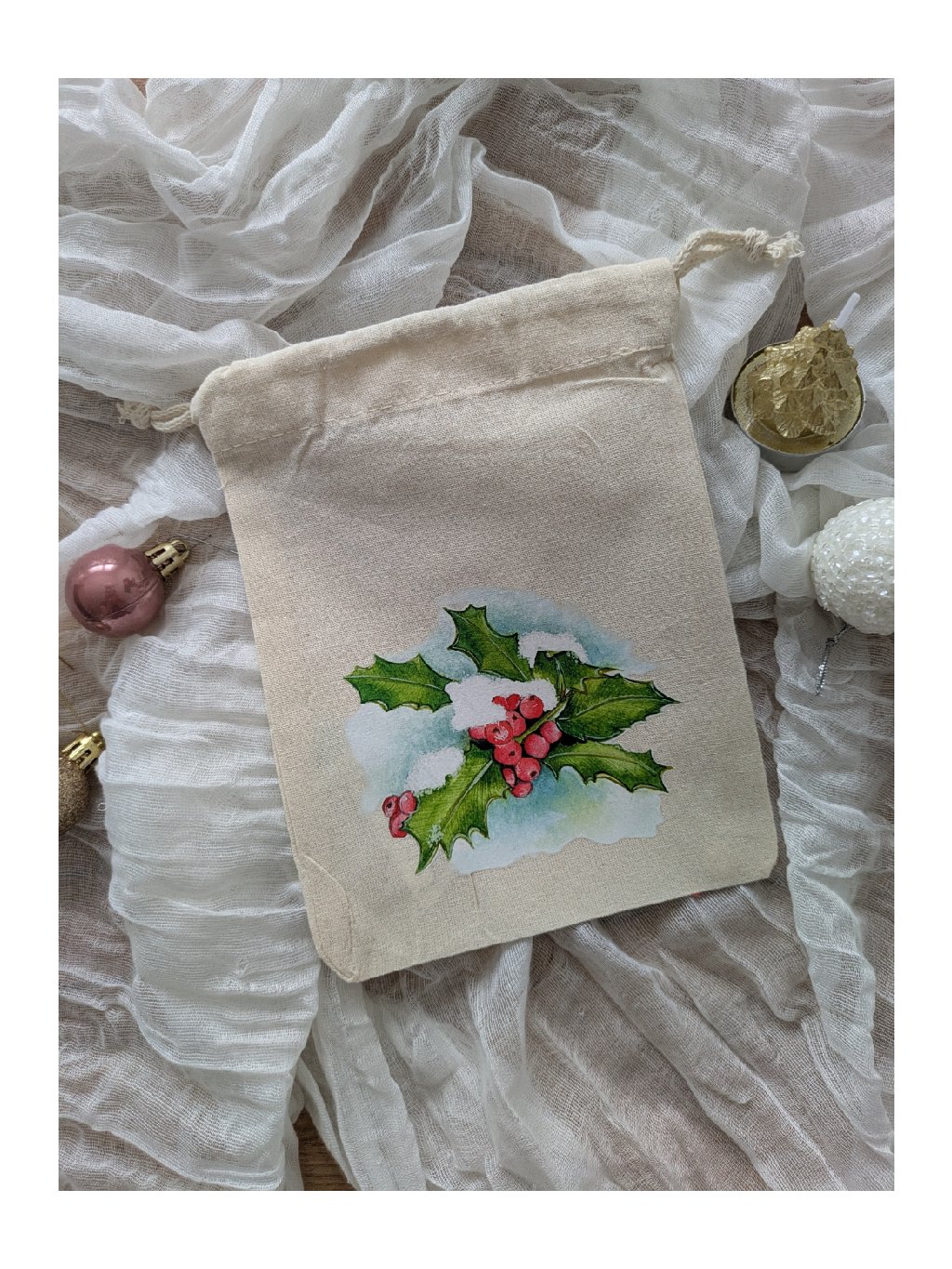 Bavlněný pytlík s potiskem cesmína malý