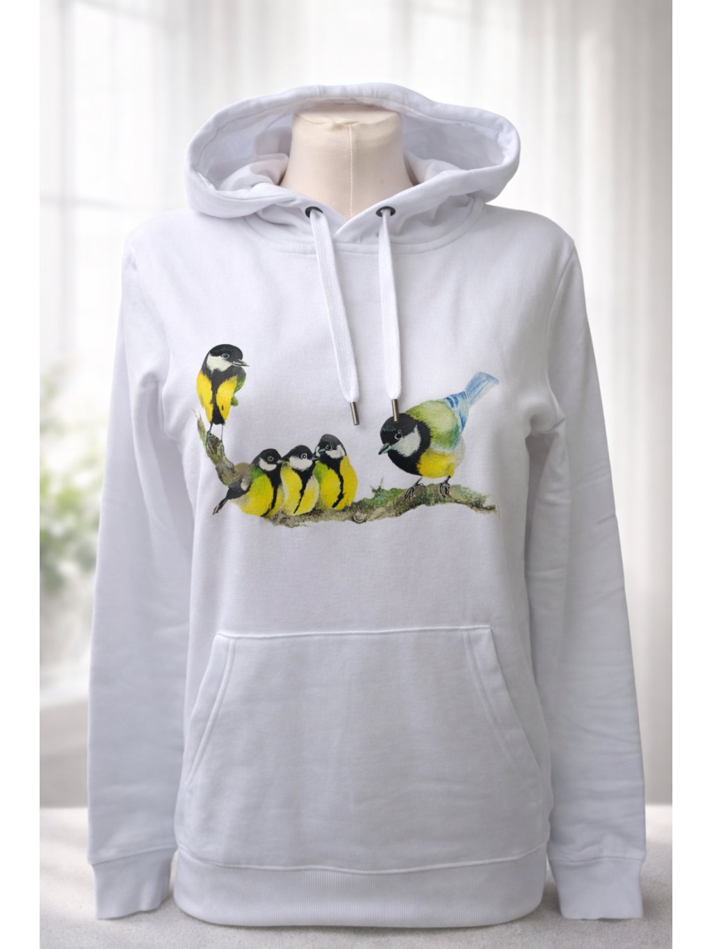 Originální mikina s potiskem sýkorek, který je mou autorskou kresbou.