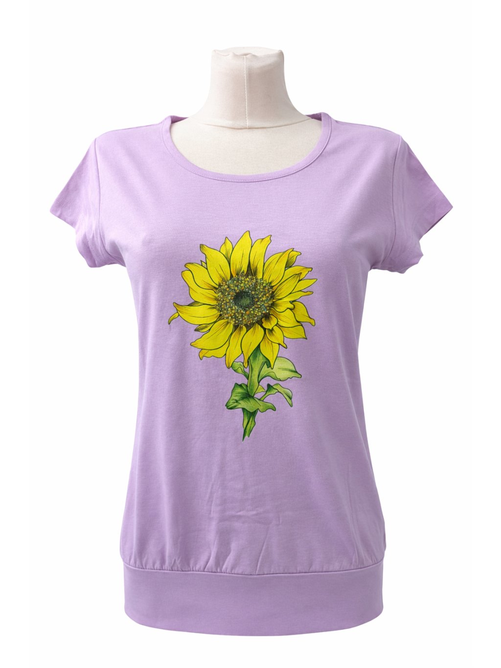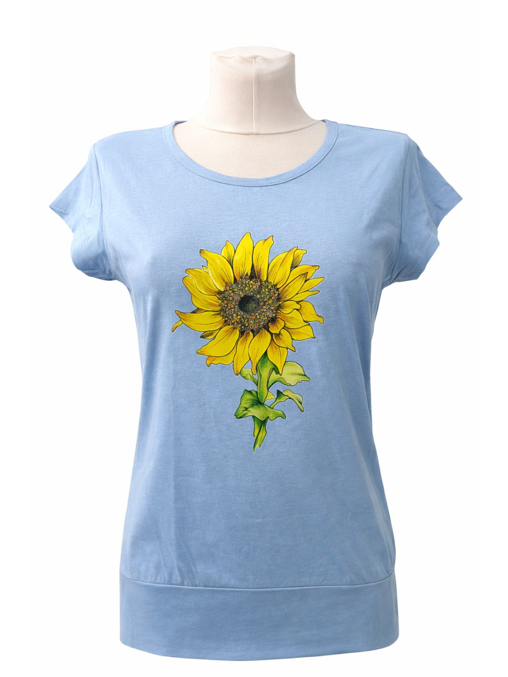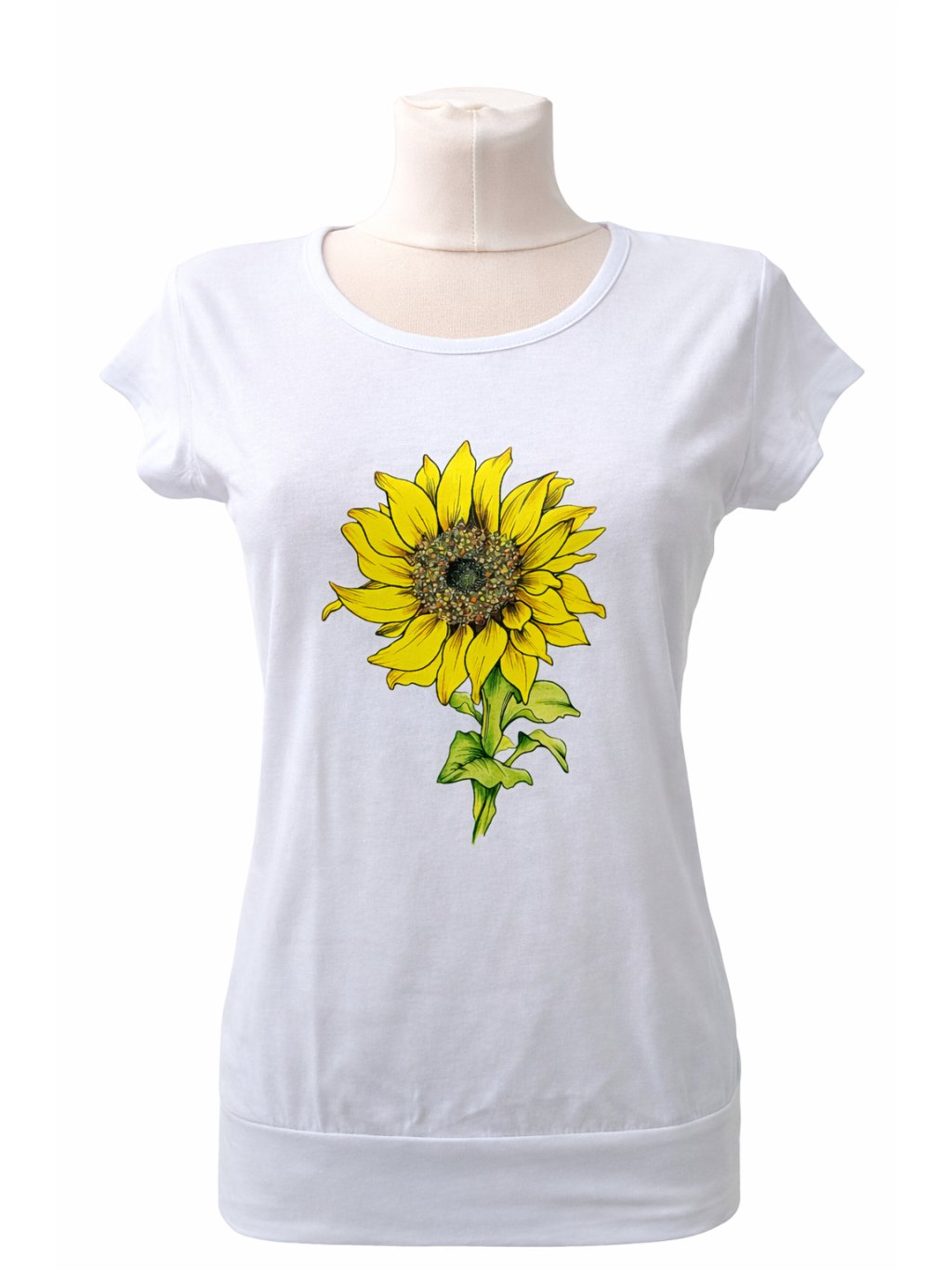 Originální tričko s potiskem slunečnice, který je mou autorskou kresbou.