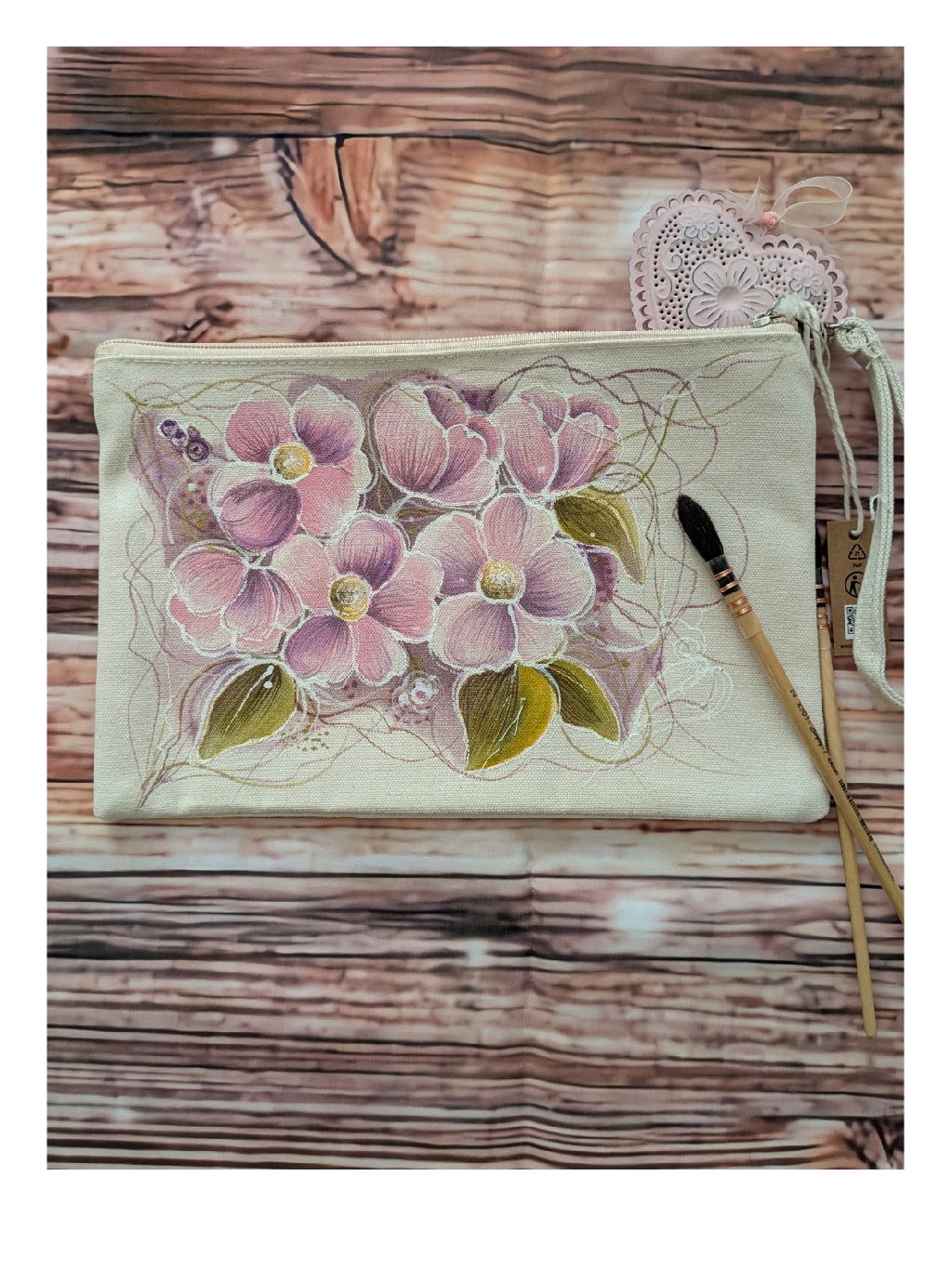 Ručně malovaná bavlněná kosmetická taštička kvítka