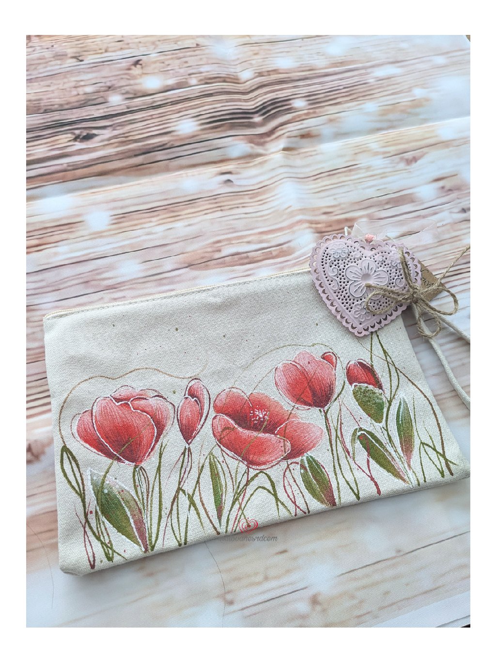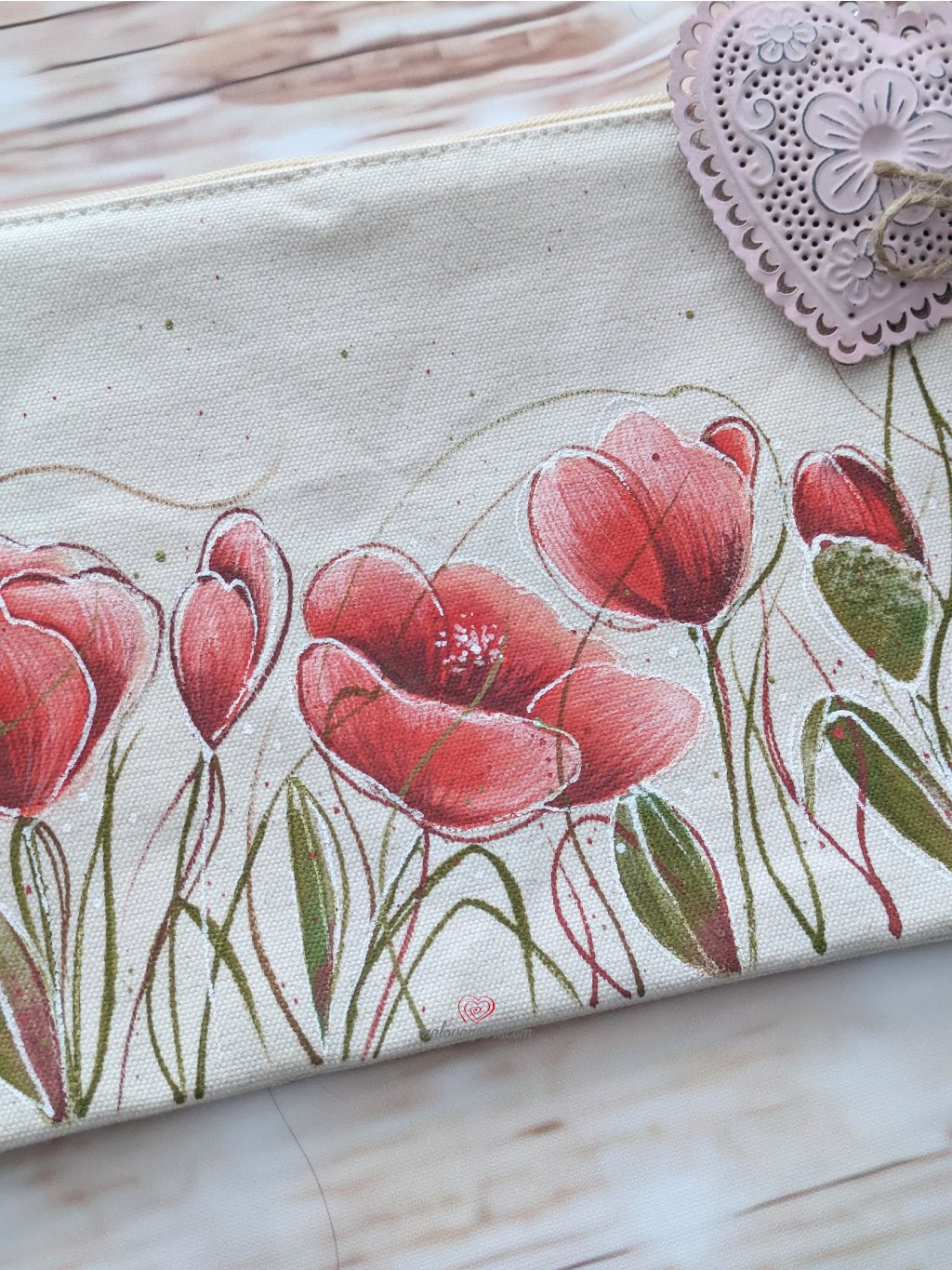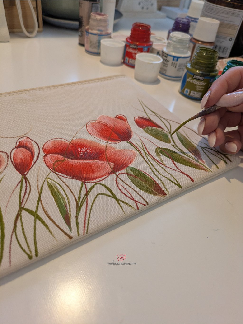 Ručně malovaná bavlněná kosmetická taštička máky