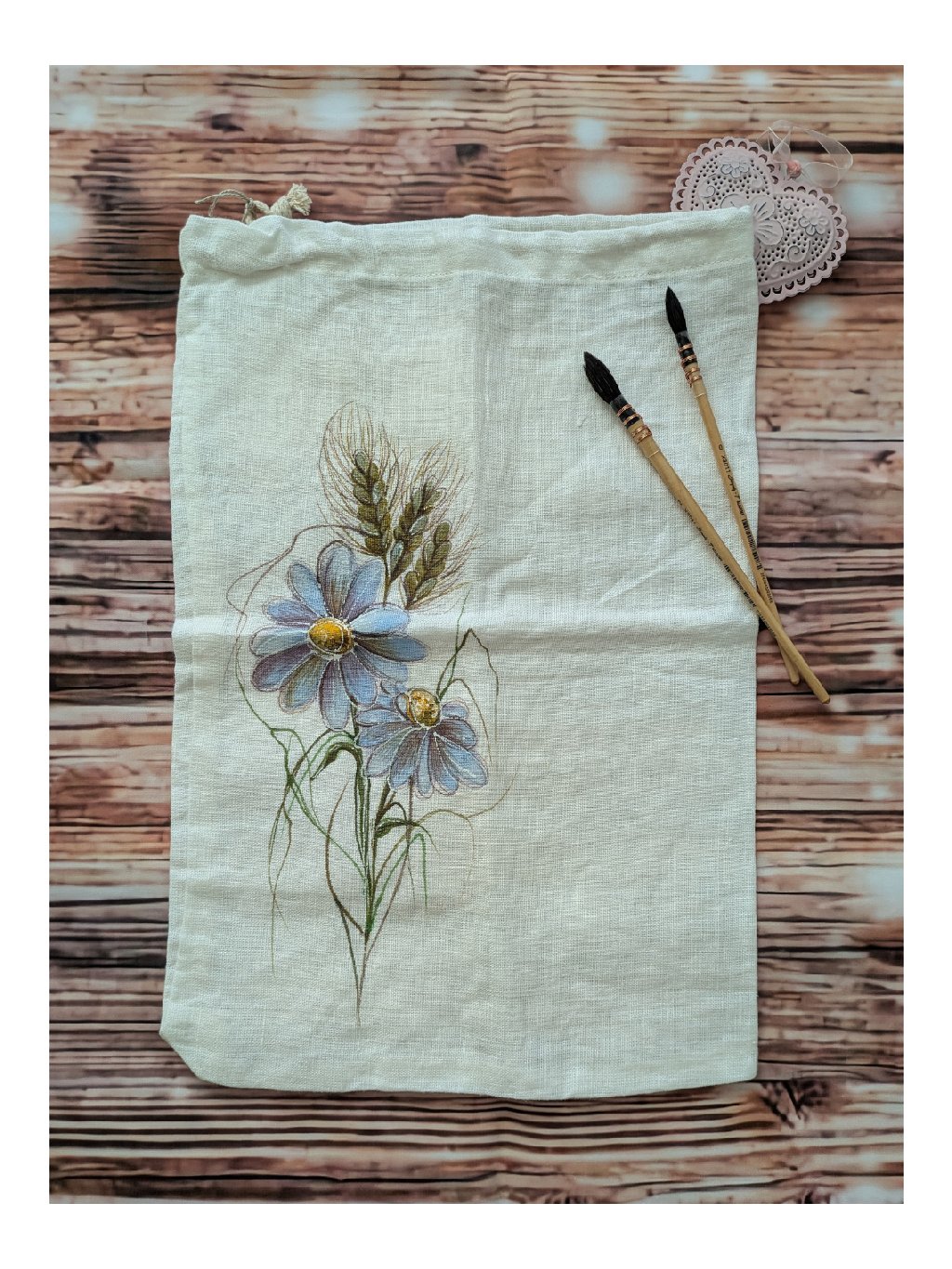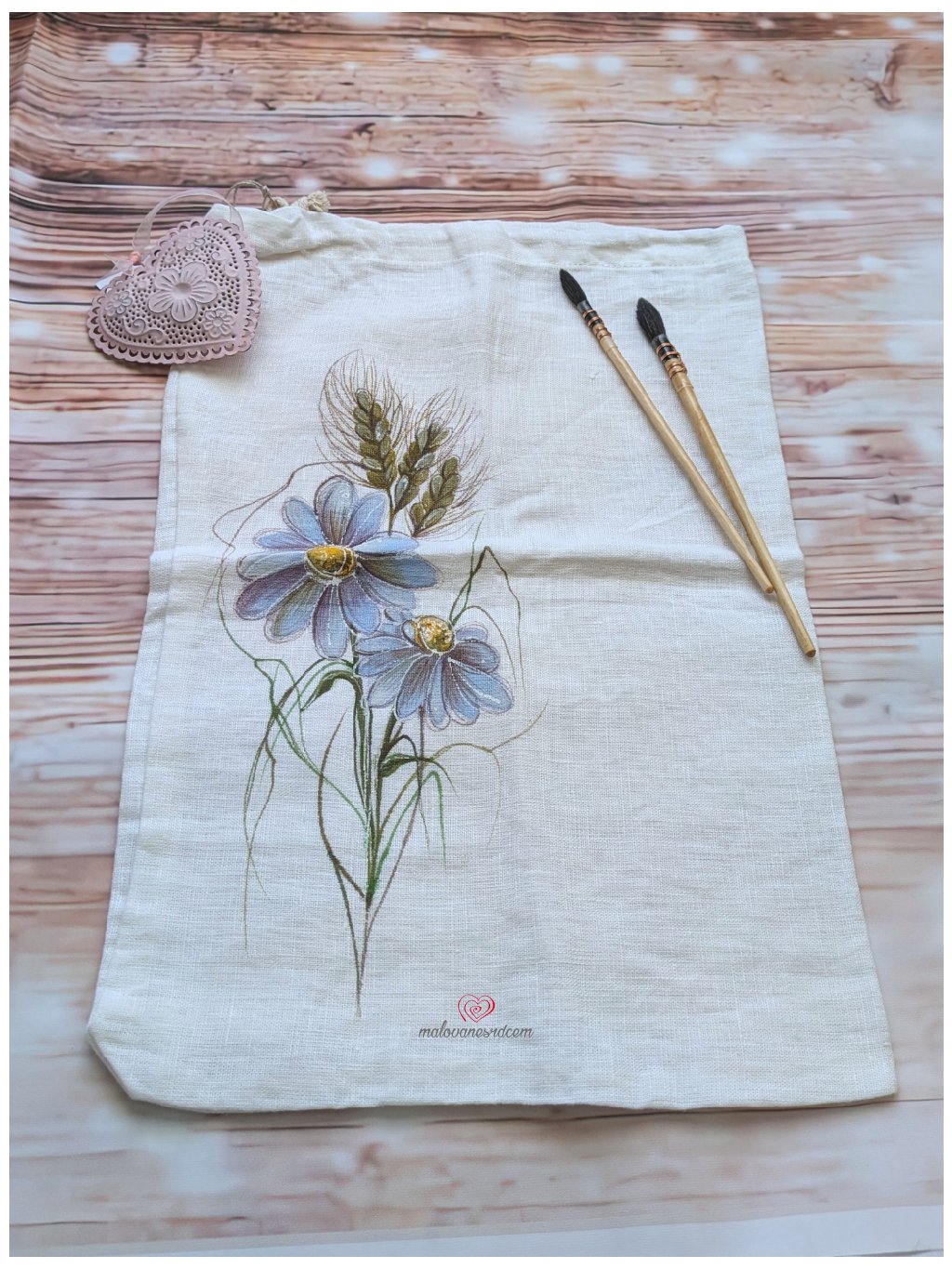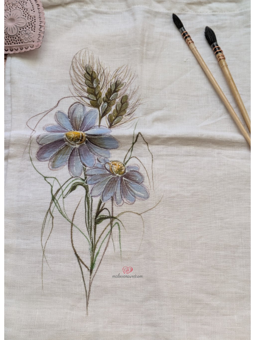 K malbě jsem použila francouzské barvy na textil a namalovala s velkou pečlivostí. Malba je tepelně zafixována.