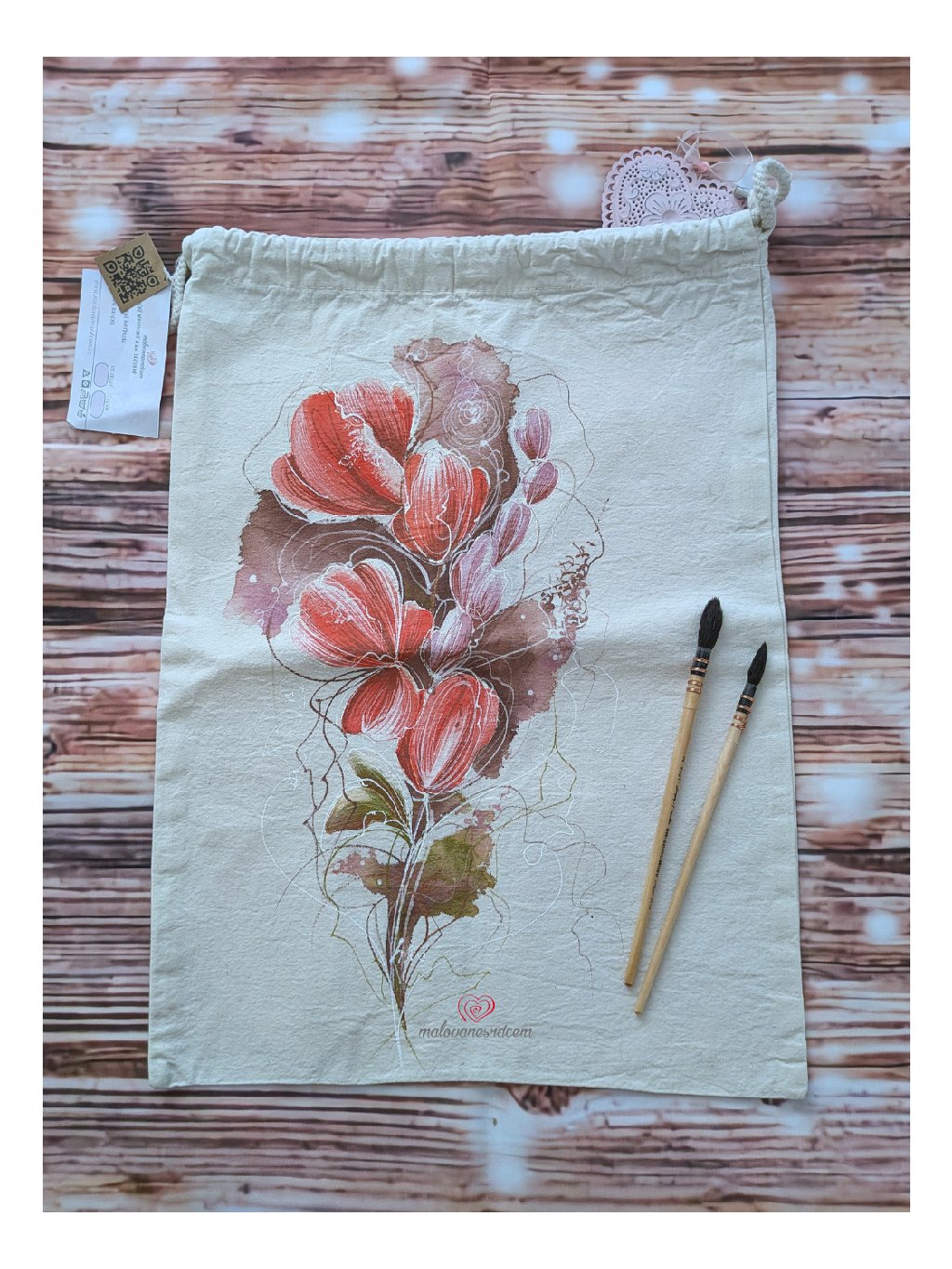 Ručně malovaný bavlněný sáček s květinami